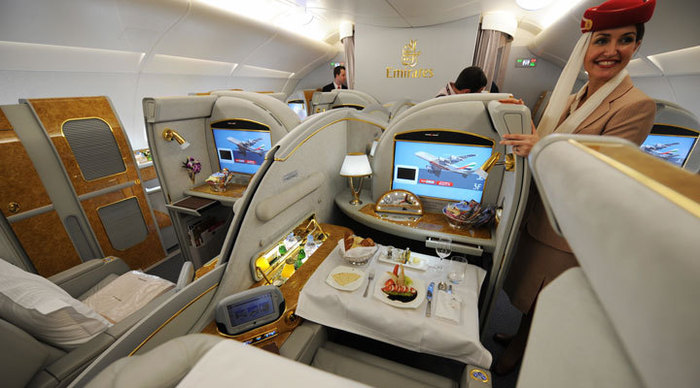 Emirates Inflight Magazine ”Open Skies” kommer månadsvis och hittas ombord på planet liksom ett prisbelönt In-Flight-Entertainment System ”ICE” med över 2000 kanaler med film (Words Best Entertainment System 2018/Skytrax), dokumentärer och musik m m (samtliga stolar med egen tv-skärm). ”Skywards” heter Frequent Flyer Poängsystemet. Planen är inredda med Economy Class & Business Class och på vissa flygplanstyper även First Class. Emirates Airline har totalt 33 Lounger i 32 länder (Business/First Class passagerare). Flygplansflottan är idag en av världens yngsta och mest moderna och man har t ex 65 st Airbus 380 (världens största flygplan) men även flertalet Boeing 777-300Er, A340-500/300, Boeing 777-200LR med flera flygplanstyper i sin enorma flotta. Code-Share samarbete med flygbolag som t ex Thai Airways, Qantas Airways, Air Mauritius, Jet Airways, Bangkok Airways, Oman Air, Korean Air, South African Airways & Tap Air Portugal.