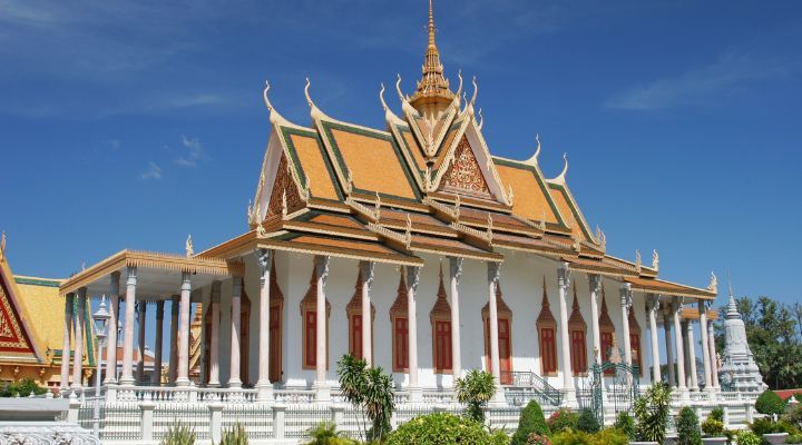 Efter frukost inleds dagen med ett besök vid det imponerande och färgstarka kungliga palatskomplexet i khmerstil, Royal Palace. I närheten ligger Silver Pagoda (Wat Preah Keo Morakot), även känd som Smaragdbuddhans tempel, där en samling vackert utsmyckade Buddhastatyer i guld, silver, diamant och andra ädelstenar finns att beskåda.